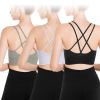 3Packs Women Cross Back Sport Bras Padded Strappy Medium Support Bras - Green+Black+White - M