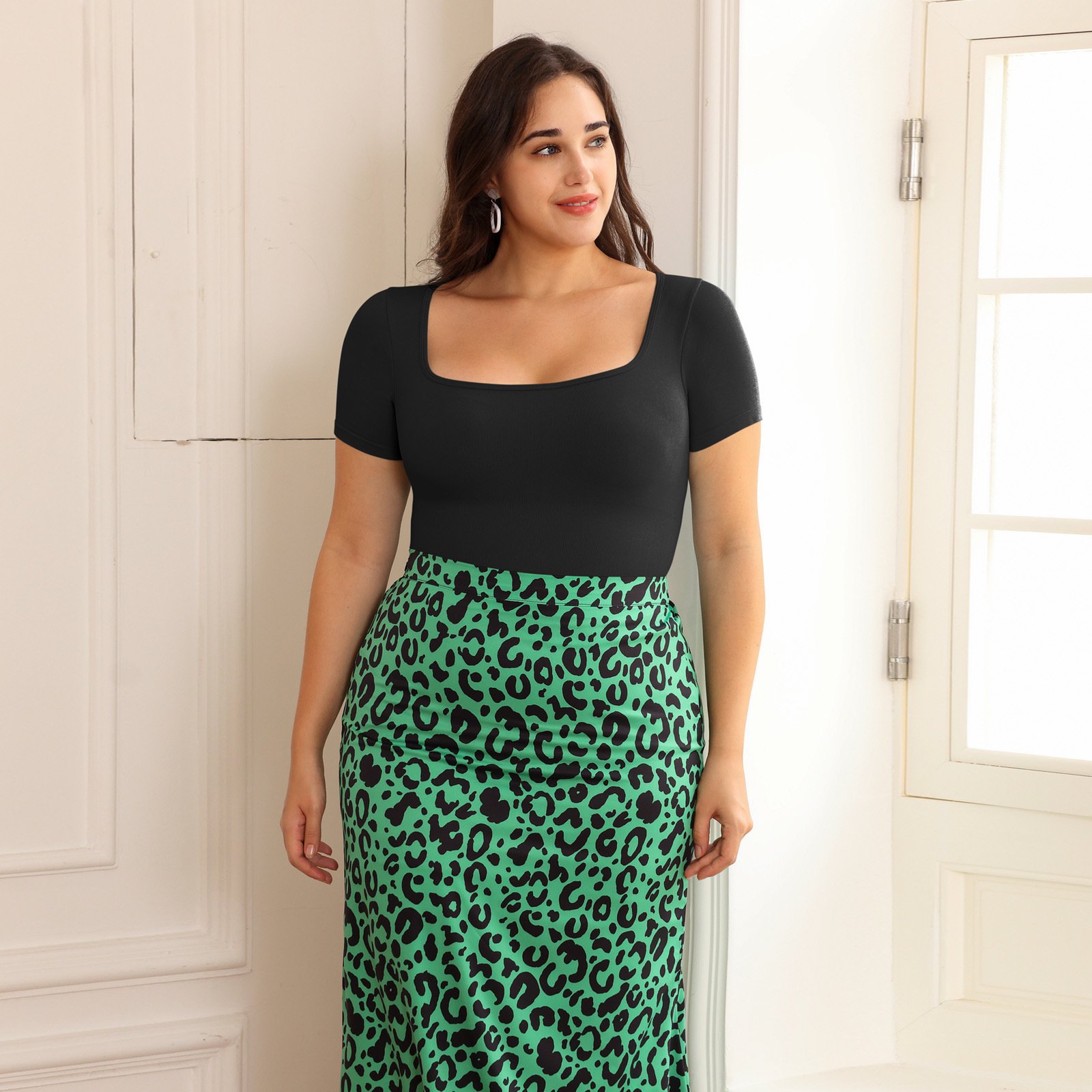Home > MRIGNT 2 Piece Short Sleeve Bodysuits for Women Sexy Ribbed Square Neck Top - M - Beige+Blue